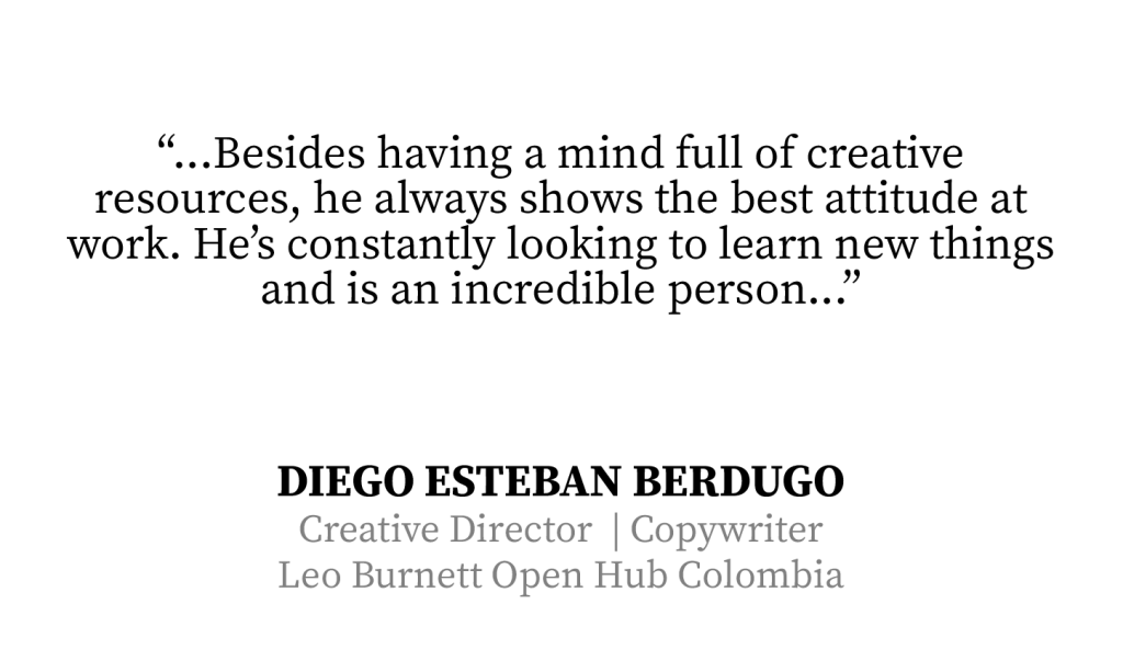 – DDB Colombia (Bogotá, CO). Copywriter – 2023