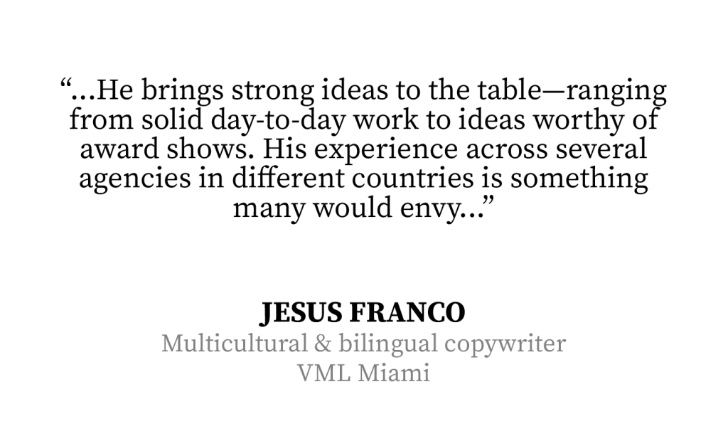 – VML Miami (Miami, FL). Bilingual Copywriter – 2025