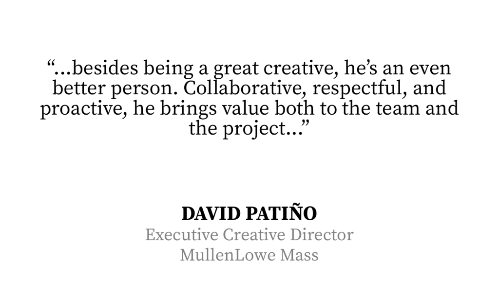 – Mullenlowe Mass (Bogotá, CO). Sr. Copywriter – 2021